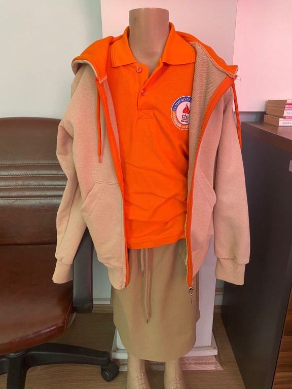 Üst: Turuncu renk polo yaka tişört (okul logosu baskılı)